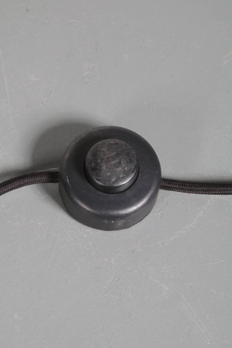 This wonderful piece resembles the shape of a sail, with a black lacquered bent metal base and a big white perforated metal shade. The base pierces to the bottom and top part of the shape, a beautiful detail to the piece. This use of shape, materials and colour together with the unique design strongly reminds of the work of Mario Botta.
