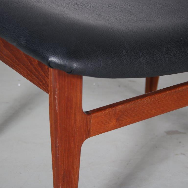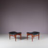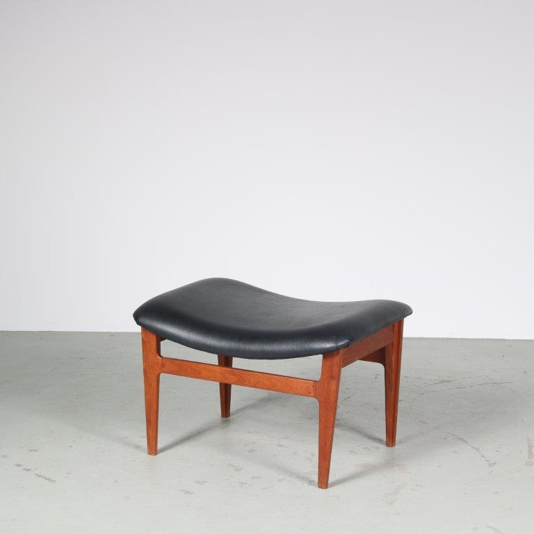 This elegant stool is made of high quality teak wood in a warm brown color. The gently curved details of the frame add a wonderful sense of elegance! The same curved finish can be seen to the black leather upholstered top, which adds not only to it’s style but also the comfort. It’s a highly recognizable find of Scandinavian mid-century design by one of the most important designers of the era. A great addition to the interior that can be used separately, or combined with a lounge chair for adding comfort and appeal.