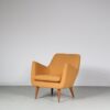 A stunning lounge chair model “Poet”, designed by Finn Juhl and manufactured by Niels Vodder in Denmark around 1950.