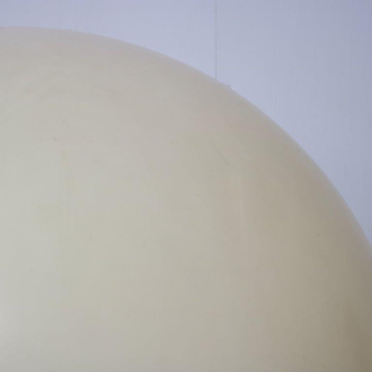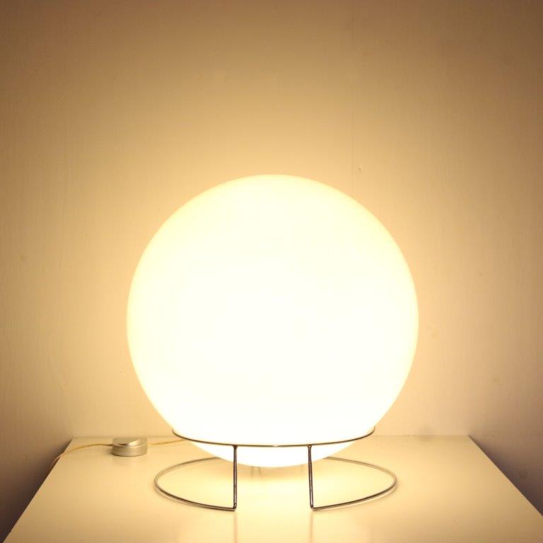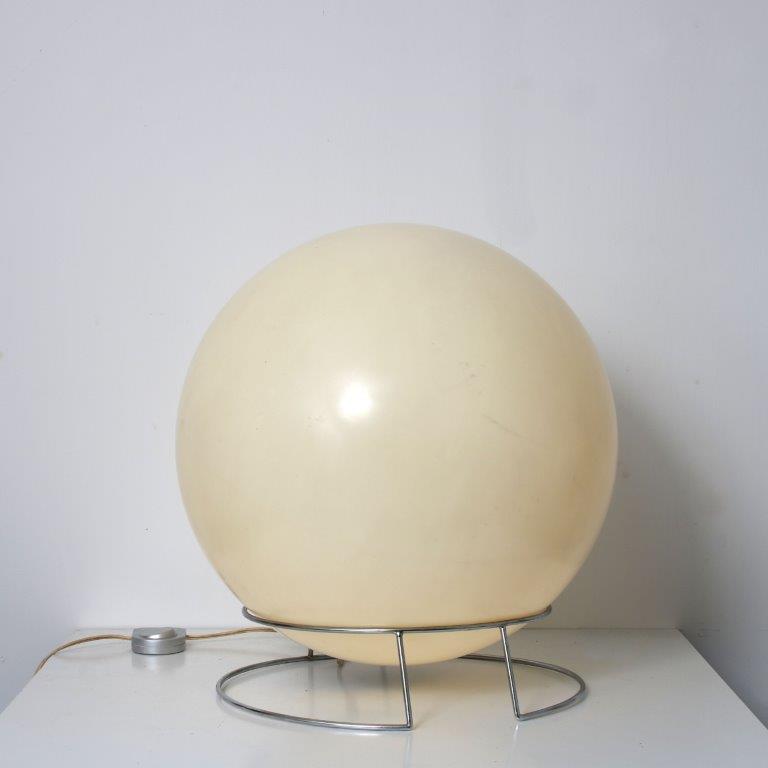 This rare piece was produced only in that year, and is therefore really hard to find! It’s is a really beautiful piece, made of a large plastic orb held by a thin tubular chrome plated metal frame. The round shapes of the fram harmonize nicely with the round shade. The off-white colored plastic allows a fantastic warm light to emit, adding atmosphere to any interior. Used as a table lamp or floor lamp, this piece will definitely be a highly valuable addition to the interior!